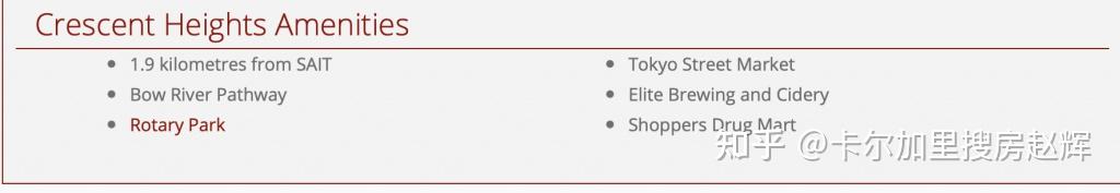 Crescent Heights北临跨加拿大高速公路,南临弓河,可快速到达户外活动、主要交通路线、餐饮和购物场所。居民可以在社区东部边界的埃德蒙顿小道上找到几个吃饭和购物的地方,如Noto Gelato和Villa Firenze。沿着从北到南贯穿该社区的Centre Street N,可以找到许多其他的餐馆和商店。Crescent Heights公园是卡尔加里最好的公园之一,为居民提供了享受户外活动的绿色空间。