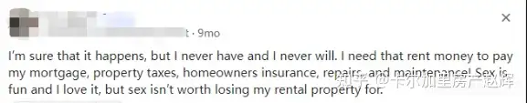 “我需要租金来支付我的贷款、房屋保险、维修和保养等等!为了一时快感而放弃房租收益,完全不值得!”