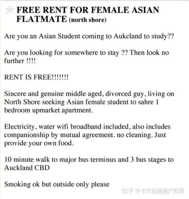 近日,在新西兰留学的女生小L(化名)爆料称,奥克兰一男子在网上发帖招租,由于房子的位置非常方便,于是小L便联系了该房东咨询租金。男子表示,是房东本人招合租,但仅限女性,关于房租,房东表示必须面议。